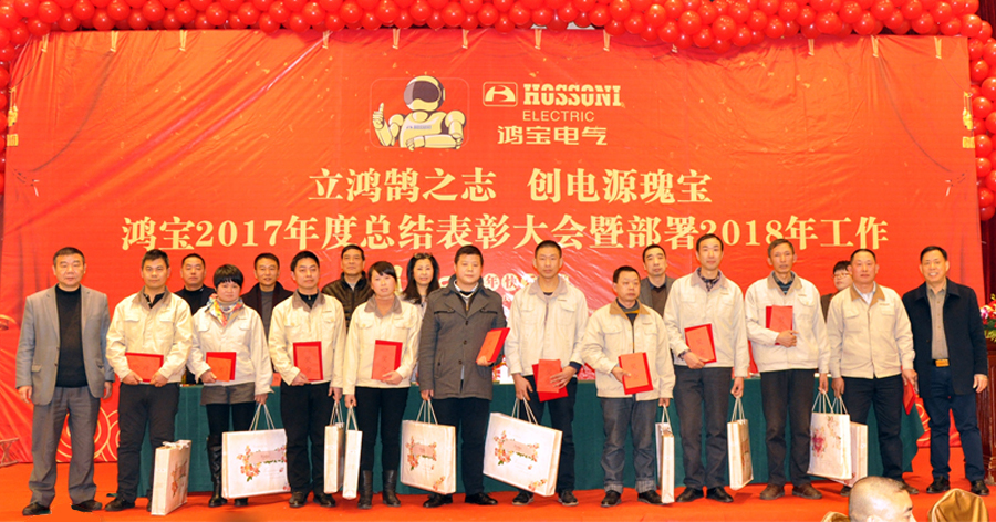 集團常務副總章國象代表公司董事會做工作總結。我們欣喜地與大家一起分享2017年取得的成績,鴻寶集團2017年穩(wěn)中求進,產品穩(wěn)壓器被評為“中國穩(wěn)壓器十大品牌”,并位居榜首,調壓器再次通過溫州及樂清名牌組的考核驗收,獲得溫州名牌、樂清名牌的稱號。“鴻寶牌”商標被浙江省工商局延續(xù)認定為浙江省著名商標,并獲評“2017機電商會推薦出口品牌”,在國內國際市場,公司積極調整銷售方針,加大網(wǎng)絡銷售力度,成立了電子商務部,全面拓展在阿里巴巴、淘寶、京東等網(wǎng)絡銷售,取得了顯著成效。在國內傳統(tǒng)市場,公司產品新型無觸點穩(wěn)壓器及三相大功率穩(wěn)壓器在恒安集團、舜宇光學全國性的產品招投標中擊敗同行,競標成功,開春即將交單。國際市場方面,我們進一步開拓了非洲安哥拉、巴勒斯坦等國家,并鞏固了東南亞菲律賓、巴基斯坦等市場,與更多大進口商簽訂合作協(xié)議,產品線深度拓展,綠色能源產品市場反饋良好。
