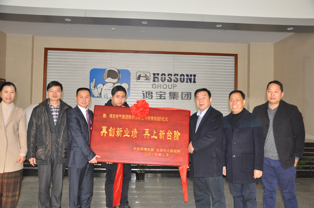 一份特殊的新春賀禮,2017年2月3日上午九點(diǎn),春節(jié)后上班第一天,樂(lè)清市副市長(zhǎng)吳呈錢帶領(lǐng)經(jīng)信局一行,來(lái)到鴻寶集團(tuán)總部,專程為樂(lè)清市銷售首超5億元的企業(yè)送來(lái)牌匾,激勵(lì)企業(yè)再接再厲、再創(chuàng)輝煌,為樂(lè)清經(jīng)濟(jì)發(fā)展作出新的更大貢獻(xiàn)。