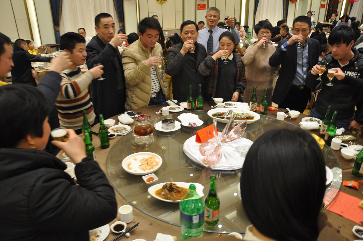 晚宴中領(lǐng)導(dǎo)給員工相互敬酒,祝福,感恩全體員工的支持與付出