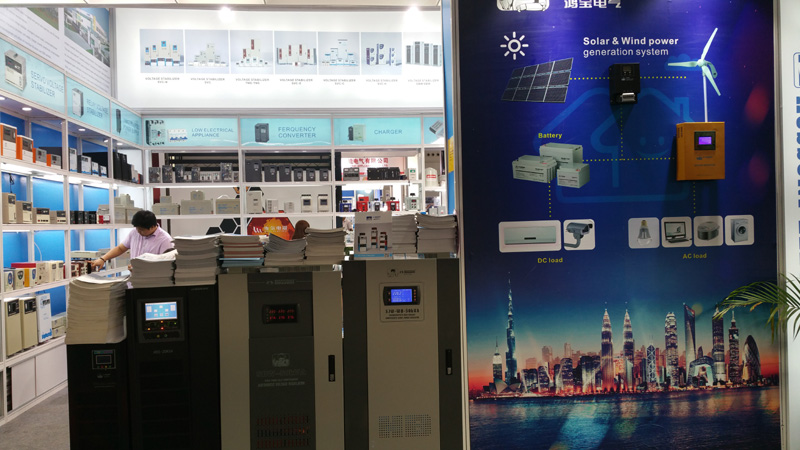 在展會上,鴻寶電氣集團公司展出了智能化穩(wěn)壓器、太陽能控制器、離、并網(wǎng)逆變器、蓄電池、變頻器,低壓電器、燈具等30多個系列的產(chǎn)品。