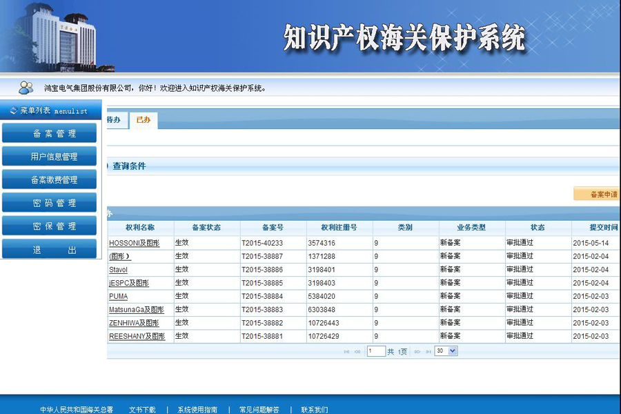 本報(bào)訊:2015年2月至5月間,鴻寶電氣集團(tuán)股份有限公司8款商標(biāo)在中華人民共和國海關(guān)總署知識(shí)產(chǎn)權(quán)保護(hù)系統(tǒng)成功備案,備案的商標(biāo)有:鴻寶牌英文商標(biāo)
