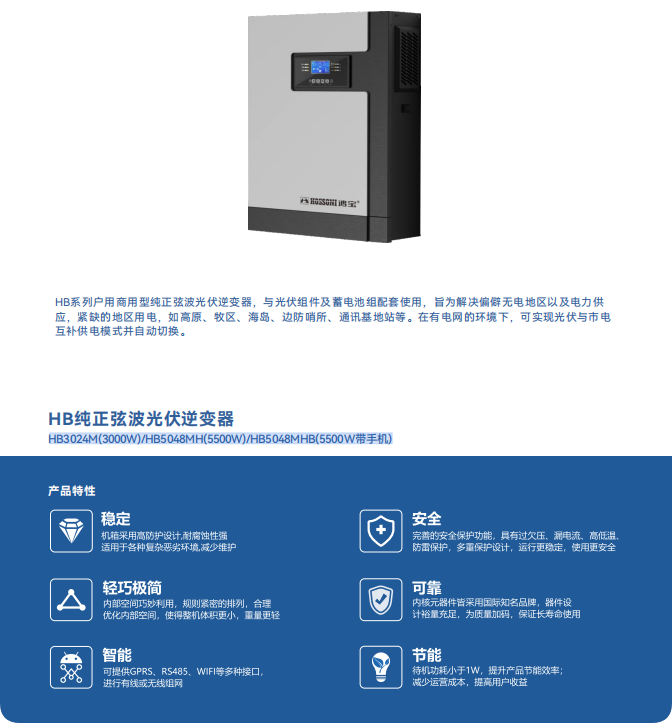 HB純正弦波光伏逆變器HB3024M(3000W)/(5500W)/(5500W帶手機(jī))